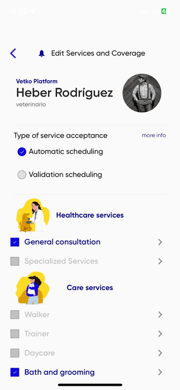 Vetko Pet está dividido en tres grandes aplicaciones, cada una con características únicas.